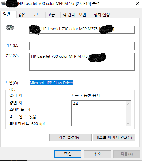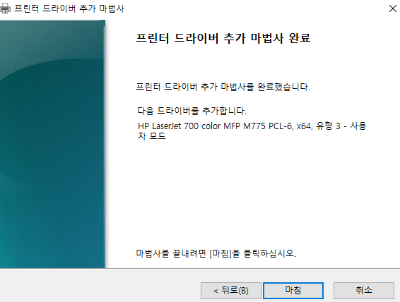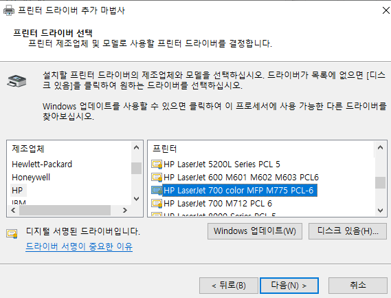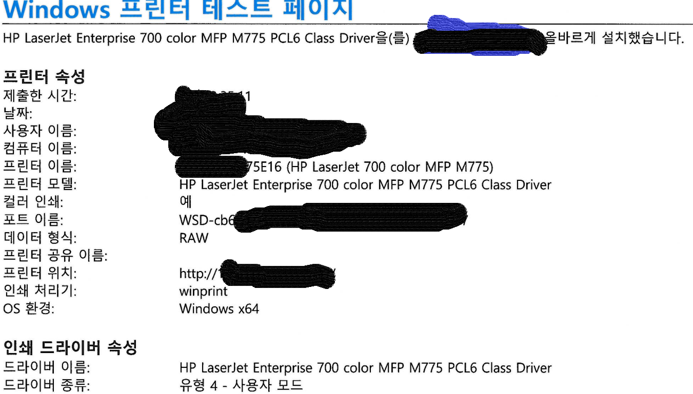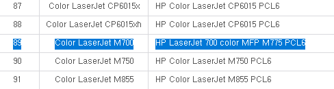 발급가능한 프린터 드라이버 이름 찾기완료 : HP LaserJet 700 color MFP M775 PCL6