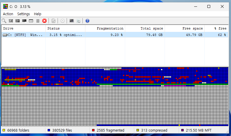 Defraggler는 Avast(예전엔 Piriform)에서 제공하는 디스크 조각 모음 도구이다. 파일위치가 최적화되어 속도를 빠르게 한다고 한다. 디스크 용량은 2번까지에서 늘어났을 것이고 3번에서는 파일위치를 최적화하는 것이라 안해도 큰 상관은 없다.