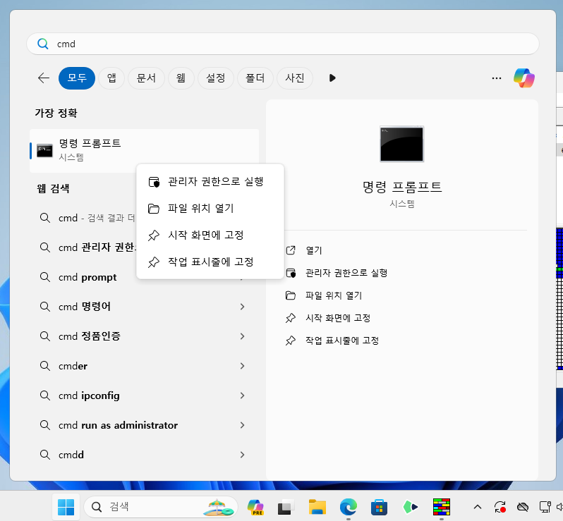 2.1 CMD '명령 프롬프트'를 관리자 권한으로 실행한다.