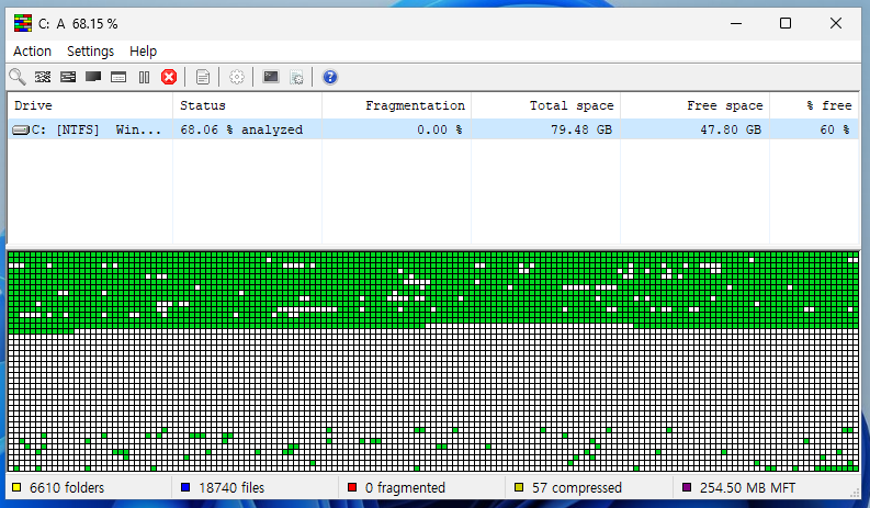 - 특히, 시스템 파일(MFT, 페이지 파일 등)도 조각 모음을 할 수 있어 성능 향상에 효과적이다.