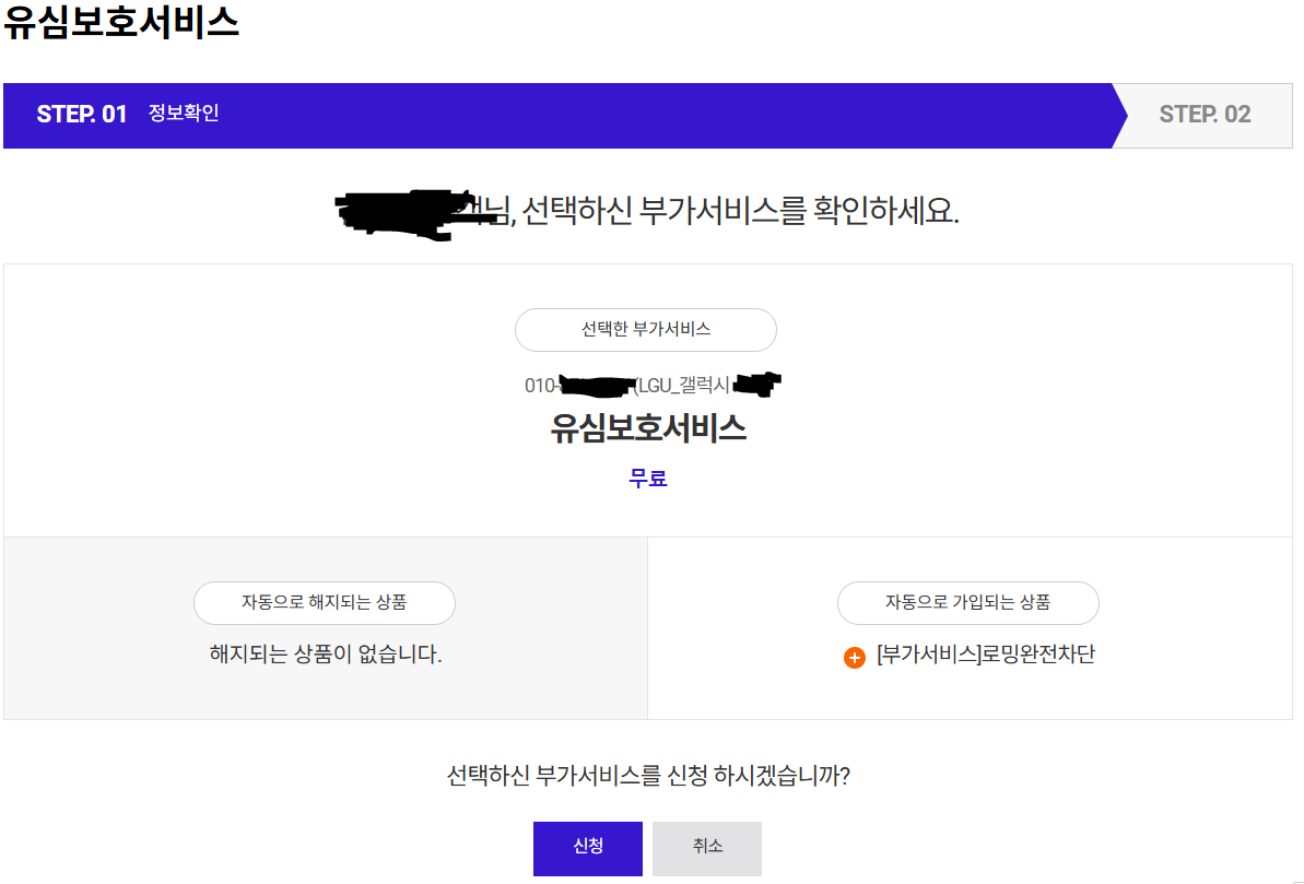 그래서 직접 "유심보호 서비스"를 신청하는게 낫다는 판단하에