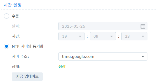제어판에서 지역옵션에서 제공하는 구글 ntp 서버와 동기화를 시작했더니 아래와 같이 몇초뒤에 동기화가 완료되었다!!!