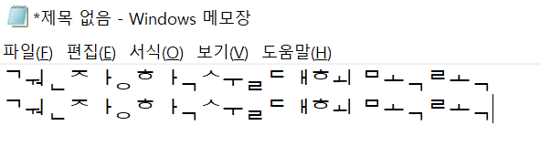 (위의 문자열 복사해서 자신의 pc 메모장에 붙여넣어보면 오른쪽과 같이 깨진다!!)